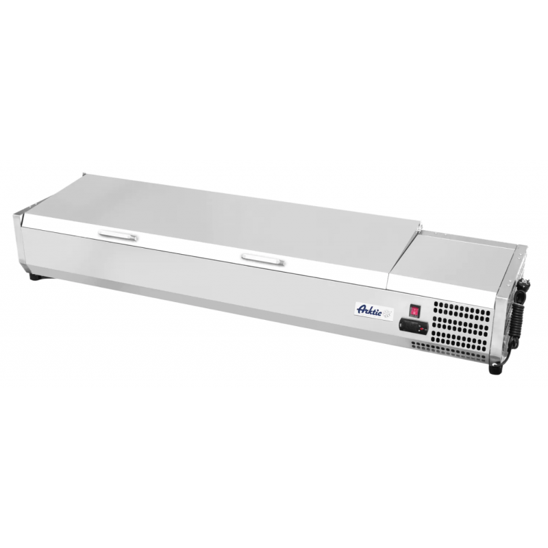 Die Kühlvitrine ist geeignet für bis zu 150 mm tiefe GN 1/3 Behälter.