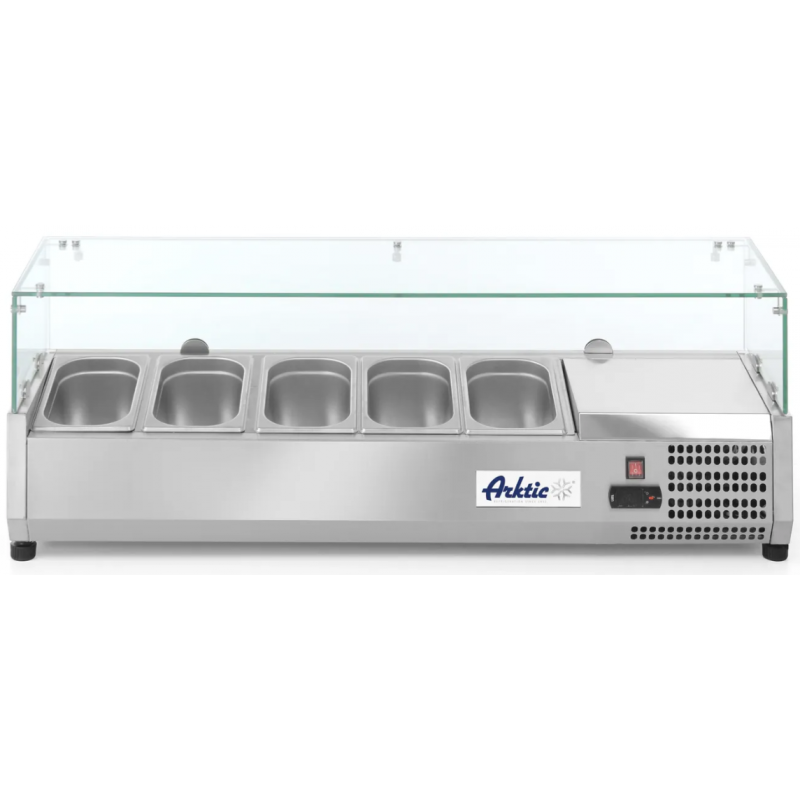 Die Kühlvitrine ist geeignet für bis zu 150 mm tiefe GN 1/4 Behälter.
