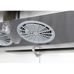 Mit Umluftkühlung mit automatischer Abtauung und oben aufliegender Kompressor.
