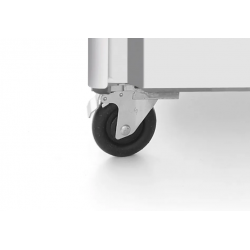 Inklusive 6 Böden Gastronorm 2/1 (650x530mm), jeder belastbar bis 40 kg (bei gleichmäßiger Lastverteilung).