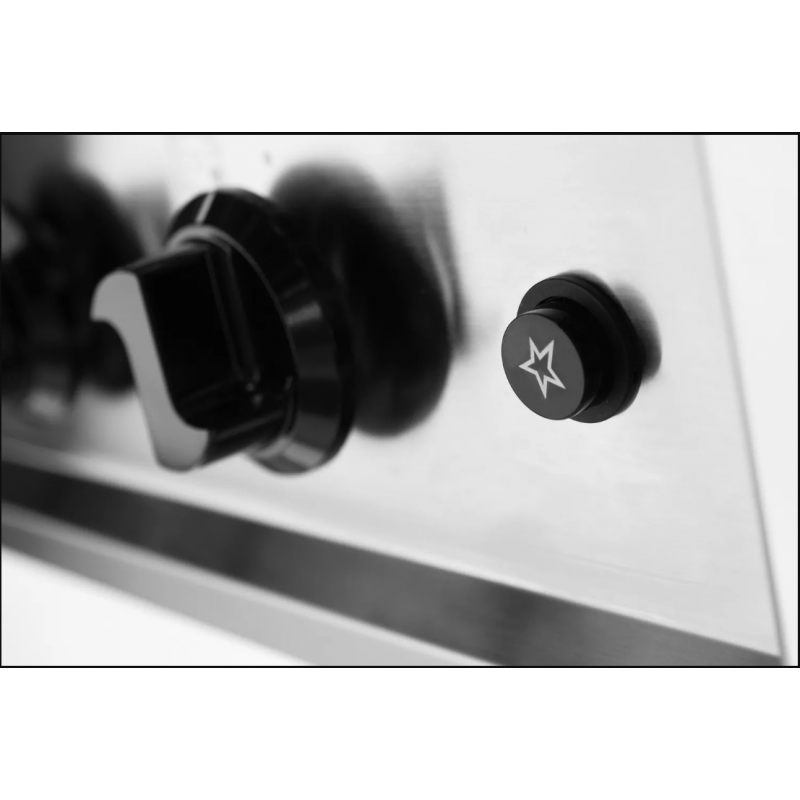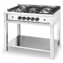 Mit 5 Brennern/Kochfeldern ausgestattet: - 3 mit je 3,0 kW. - 1 mit 1,8 kW. - 1 Wok-Kochfeld mit 3,5 kW.