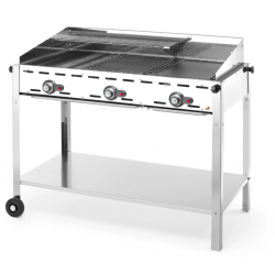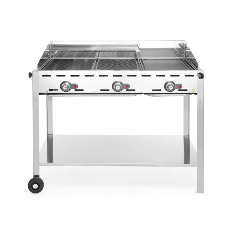 Emaillierte Grillplatte aus Gusseisen und Gastronorm Rost GN 1/1 enthalten.