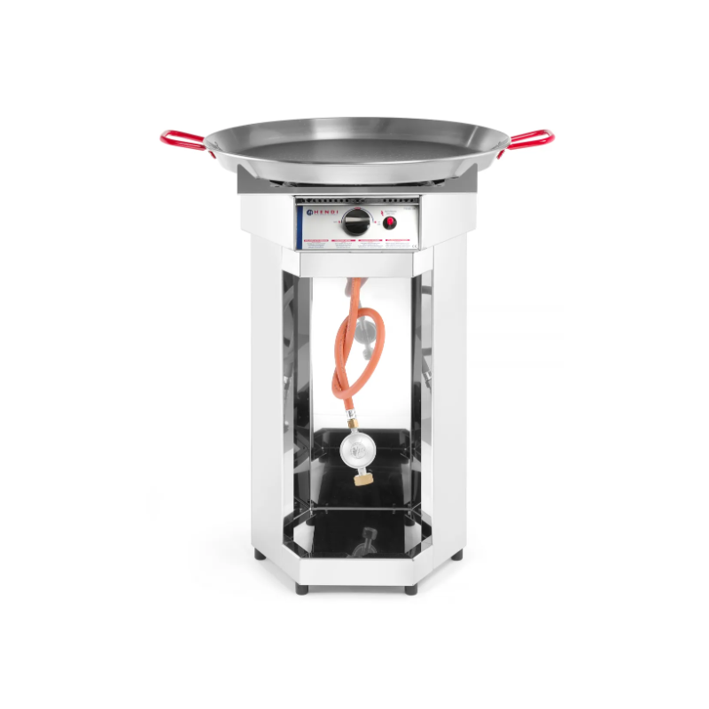 Untergestell aus Chromstahl mit Paellapfanne aus Flachstahl Ø 600 mm.