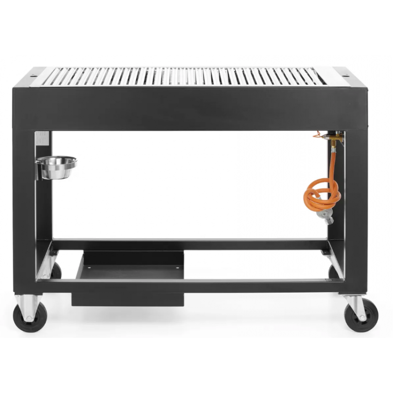 Der Gasgrill Tampa verfügt über ein komplett schwarz epoxidbeschichtetes Rahmengestell mit vier Rollen (2 davon mit Bremse) und einem sicheren Gasflaschenhalter.