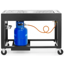 Dank der tiefergesetzten Gasflaschenhalterung können Sie die Gasflasche sicher unter der Grillfläche platzieren.