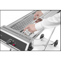 Da der Brenner im windgeschützten Gehäuse eine hohe Temperatur erzeugt, eignet sich dieser Grill insbesondere für das Grillen von großen Stückzahlen in kürzester Zeit.