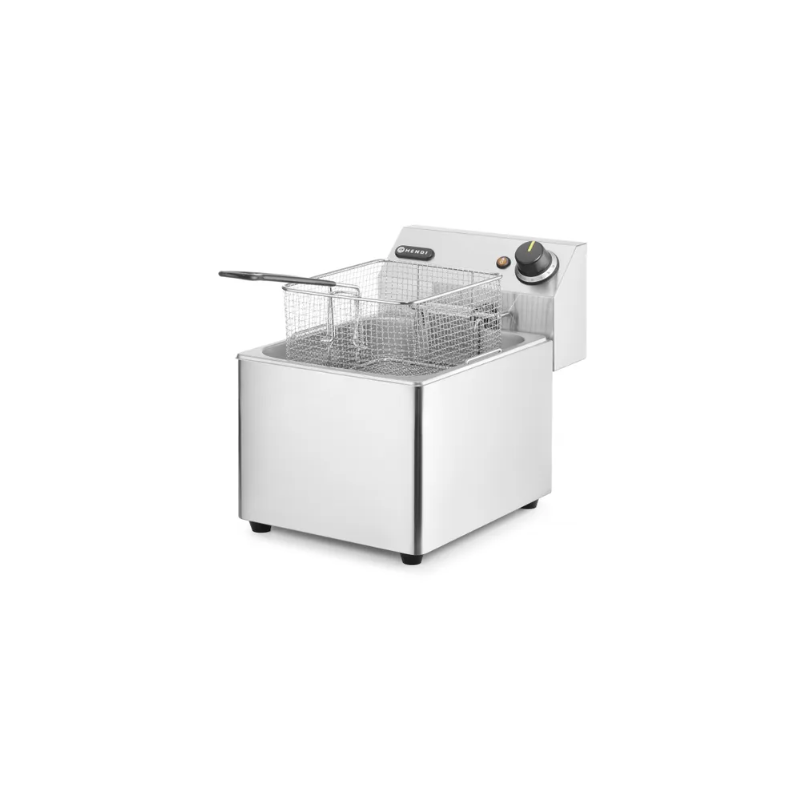 Frittierkorb mit wärmeisoliertem und extra langem Griff.